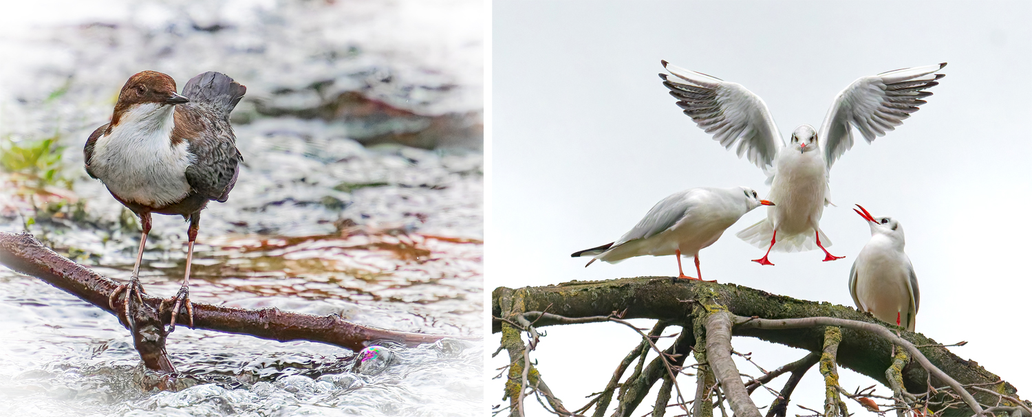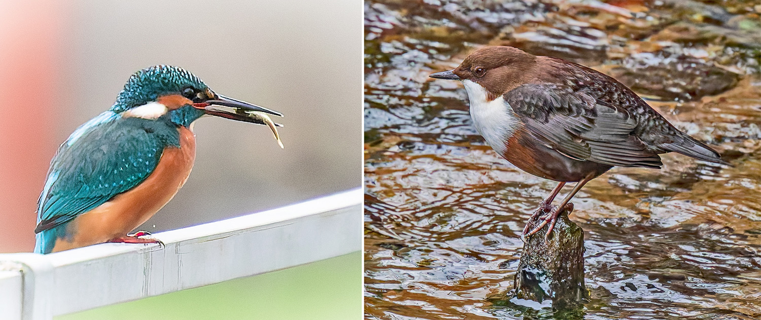 Eisvögel fotografieren möchte fast jeder. Aber bei Eisvogel-Fotografie denkt man sofort an stundenlanges Ausharren im Tarnzelt und das möchte nicht jeder auf sich nehmen. Doch nicht nur in freier Natur, auch in städtischen Bereichen sind Wildtiere anzutreffen, z. B. wenn sich im Winter dort eine bessere Nahrungsgrundlage bietet. Je kälter es ist, desto mehr Eisvögel kommen ins Stadtgebiet. Fürs Fotografieren heißt das, je kälter, desto besser. An die Unruhe der Stadt und auch an die Gegenwart von Menschen haben sie sich scheinbar etwas gewöhnt, denn die sonst sehr scheuen Vögel haben ihre Fluchtdistanz daran angepasst. Hält man die Distanz ein, die die Vögel vorgeben, kann man sie gut beim Fischfang beobachten und sehr gute Eisvogelfotos machen. Neben den Eisvögeln sind auch Wasseramseln und Gebirgsstelzen wunderschöne Fotomotive dieser Location.